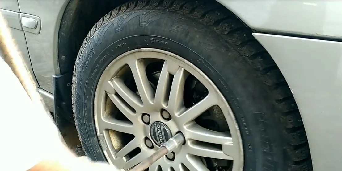 - Поддомкрачиваем и снимаем колесо.