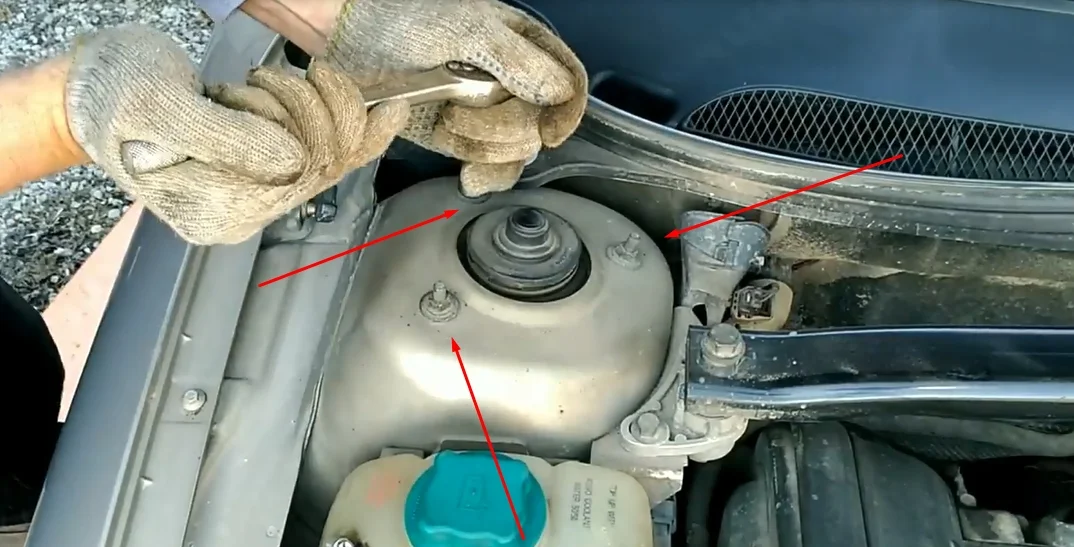 - Гайки крепления стойки под капотом затягиваем с моментом 25-30 Нм.