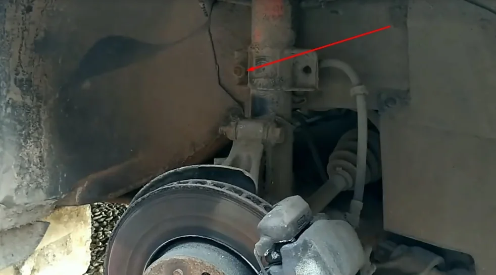 - Переставляем со старой стойки кронштейн крепления датчика ABS, он на заклепках. Высверливаем или срубаем кронштейн со старой стойки и заклепываем на новую. Заклепок нужно 2 штуки на 3 мм.
