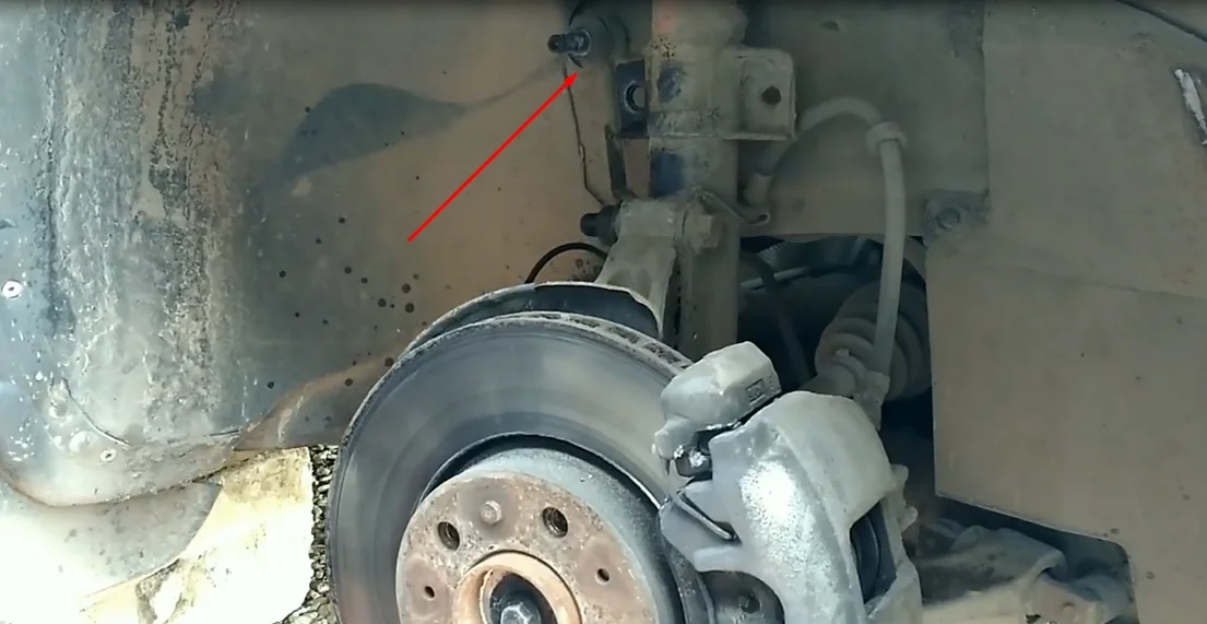 - Отсоединяем от стойки провод датчика ABS и откручиваем гайки крепления стойки под капотом. Гайки под головку на тринадцать.