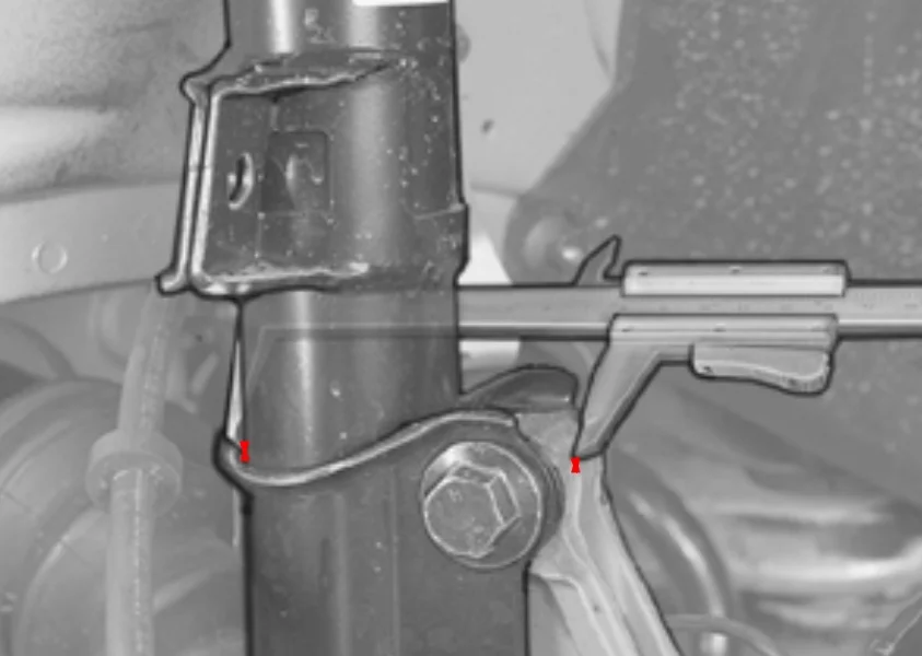- Производим штангенциркулем замер как на фото. При сборке кулака к стойке нужно выставить этот размер.