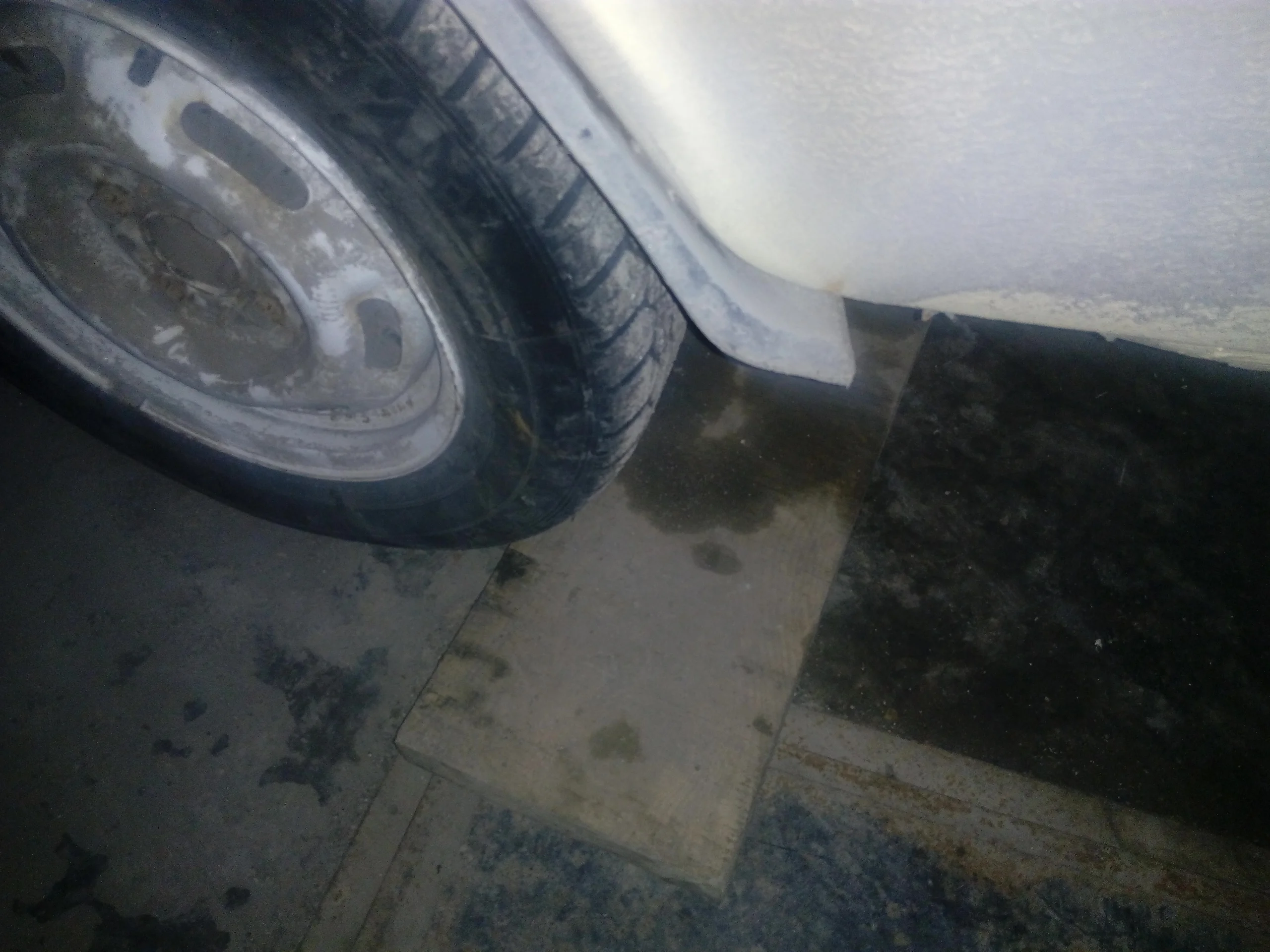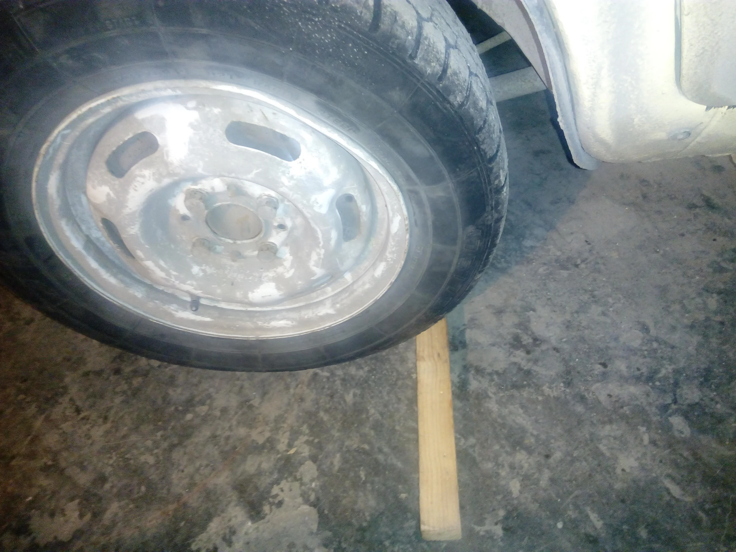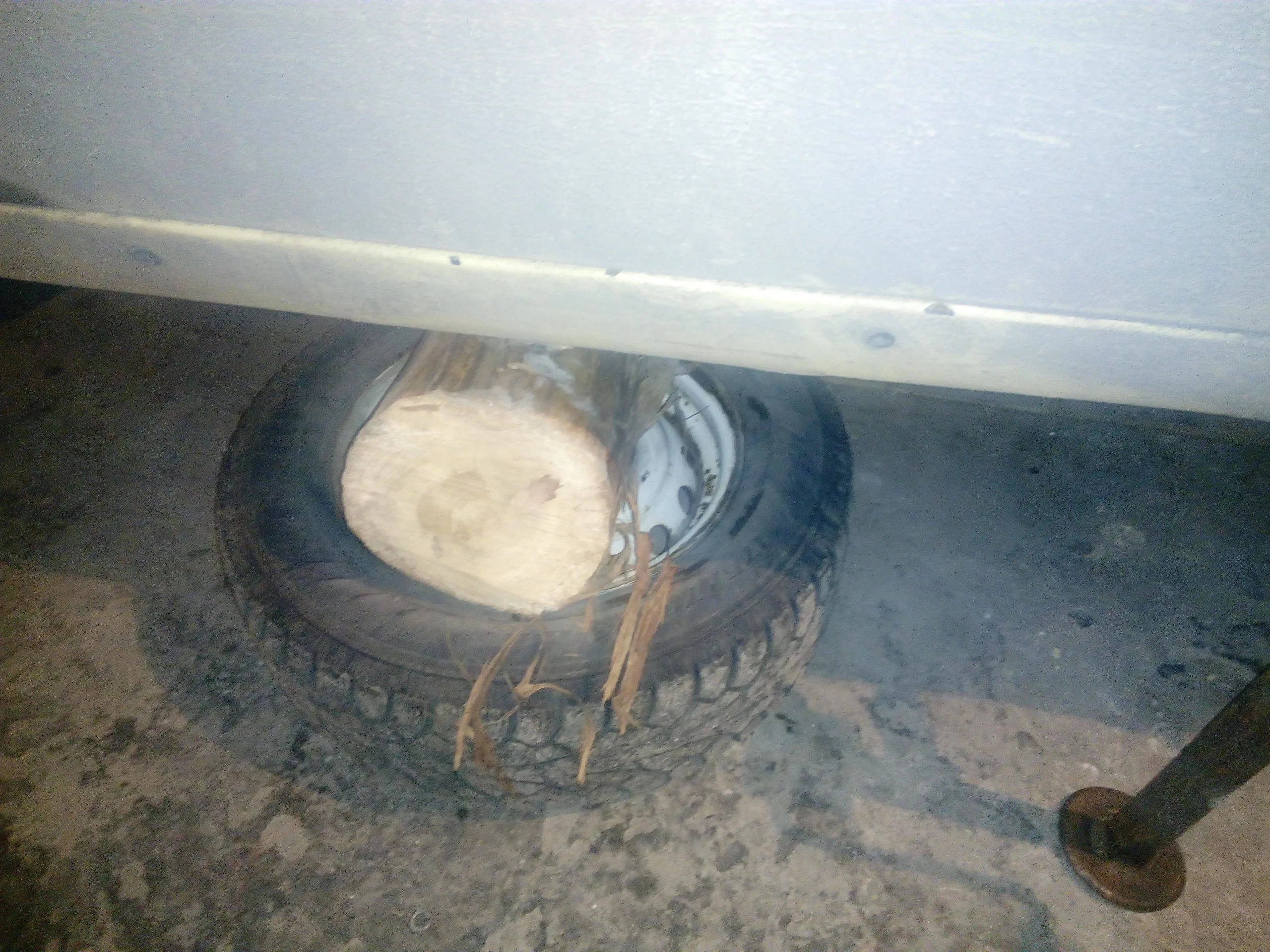 - Подкладываем колесо и бревно(любой другой предмет который выдержит нагрузку автомобиля.