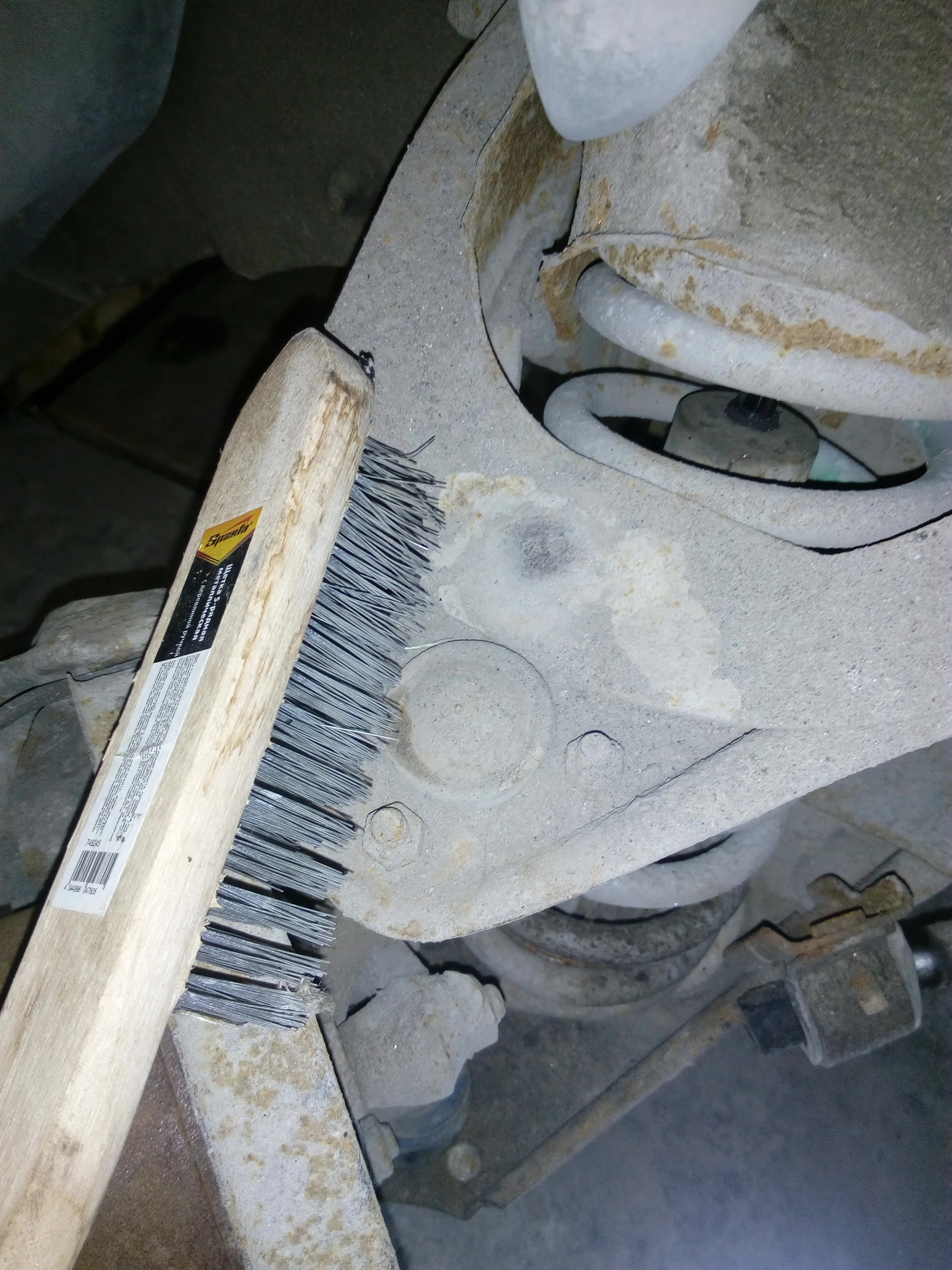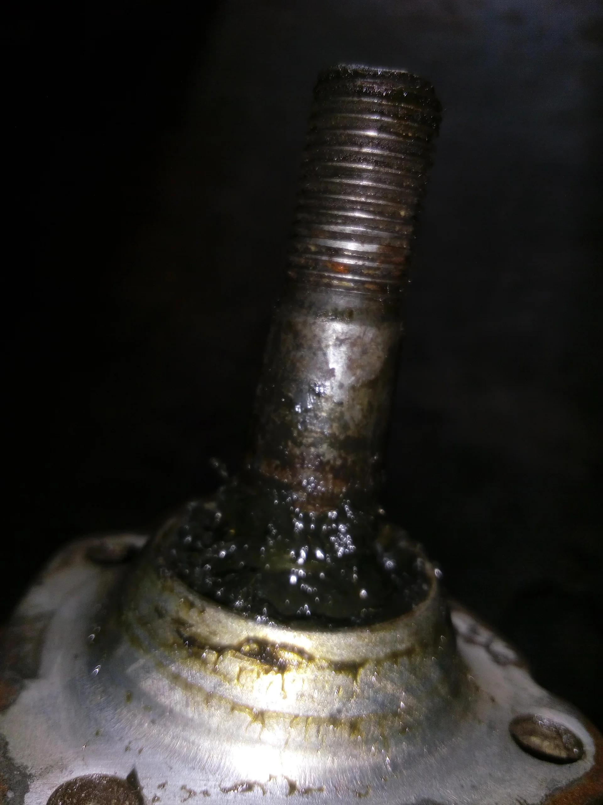 - Щеткой по металлу тщательно очищаем резьбу пальца шаровой опоры. До блеска. Не пренебрегайте этим пунктом так как это во много раз облегчит всю работу.