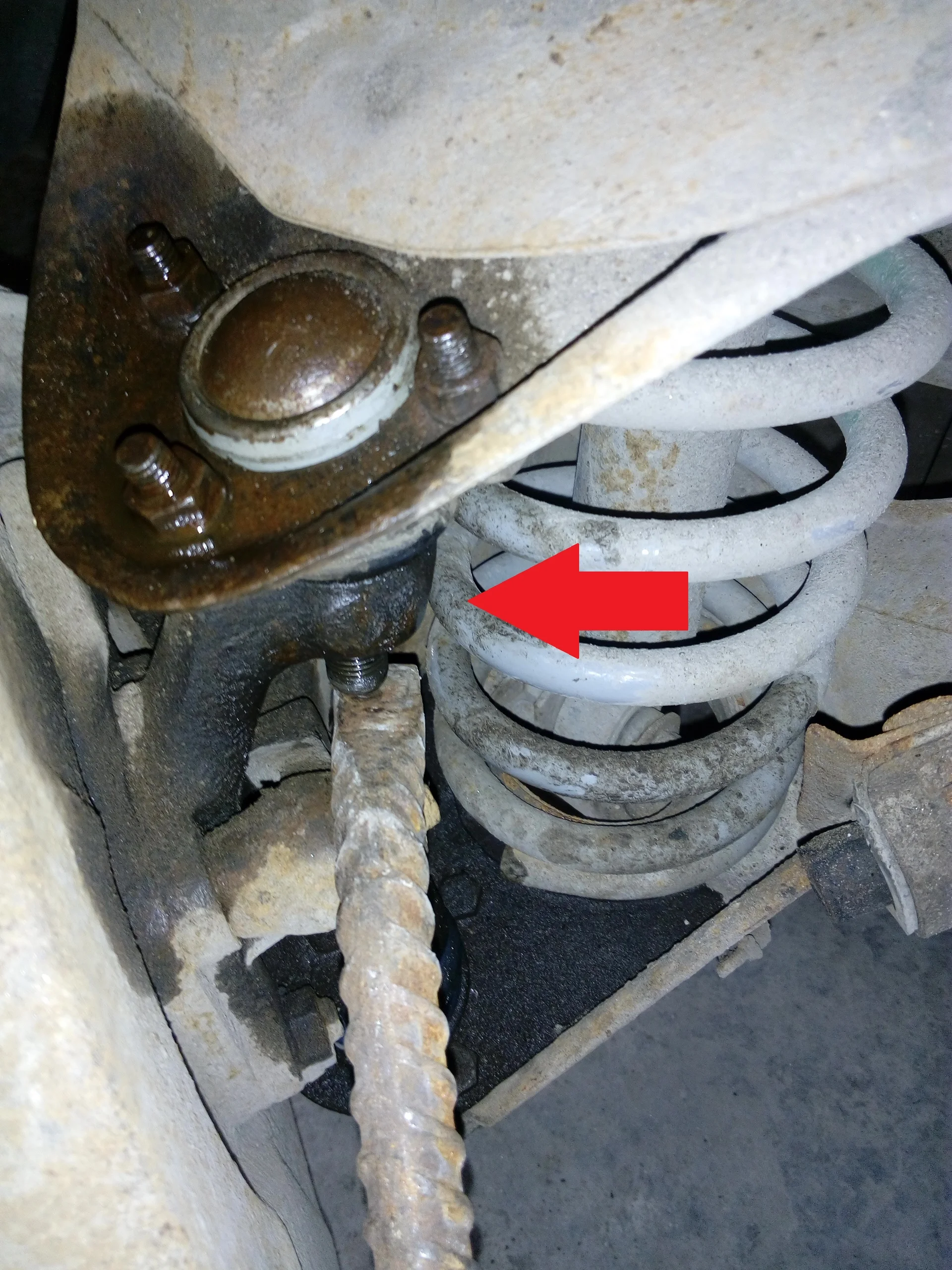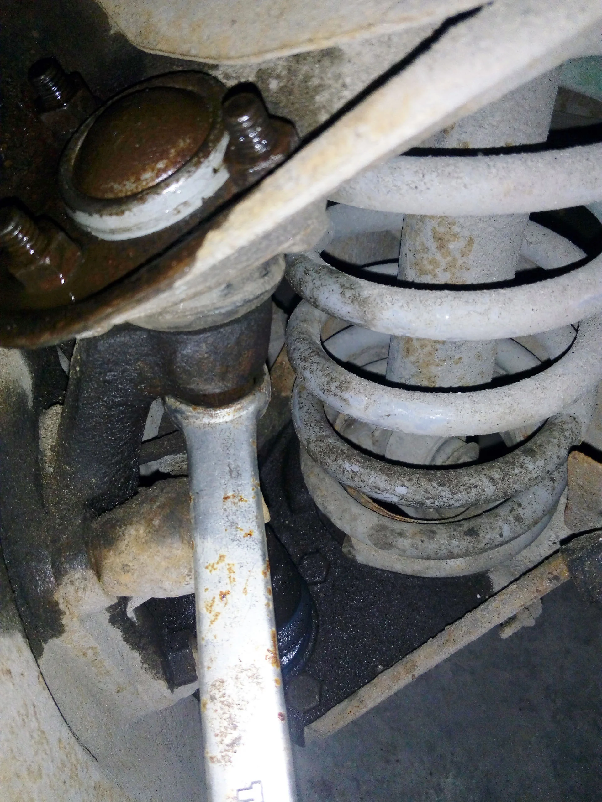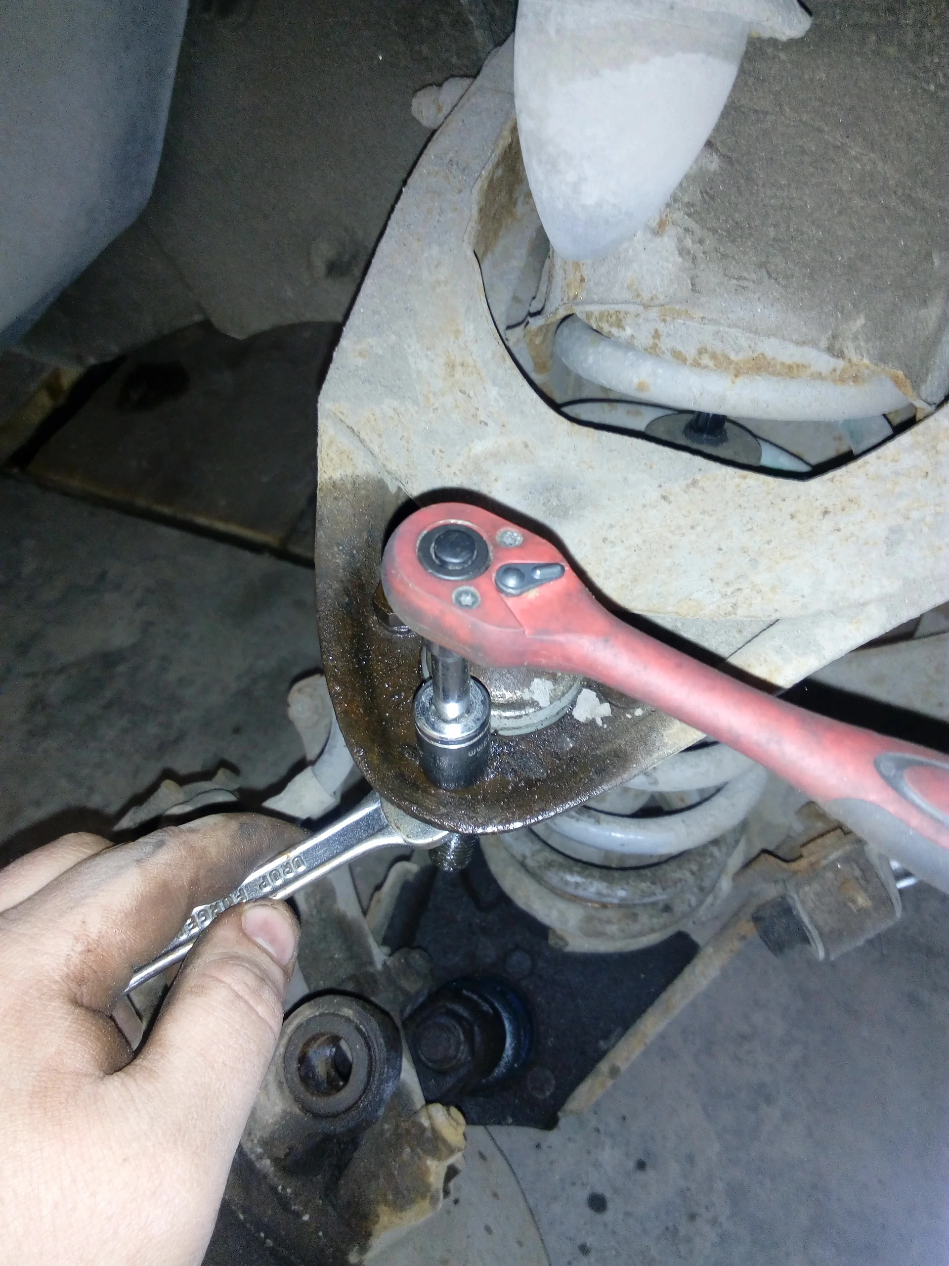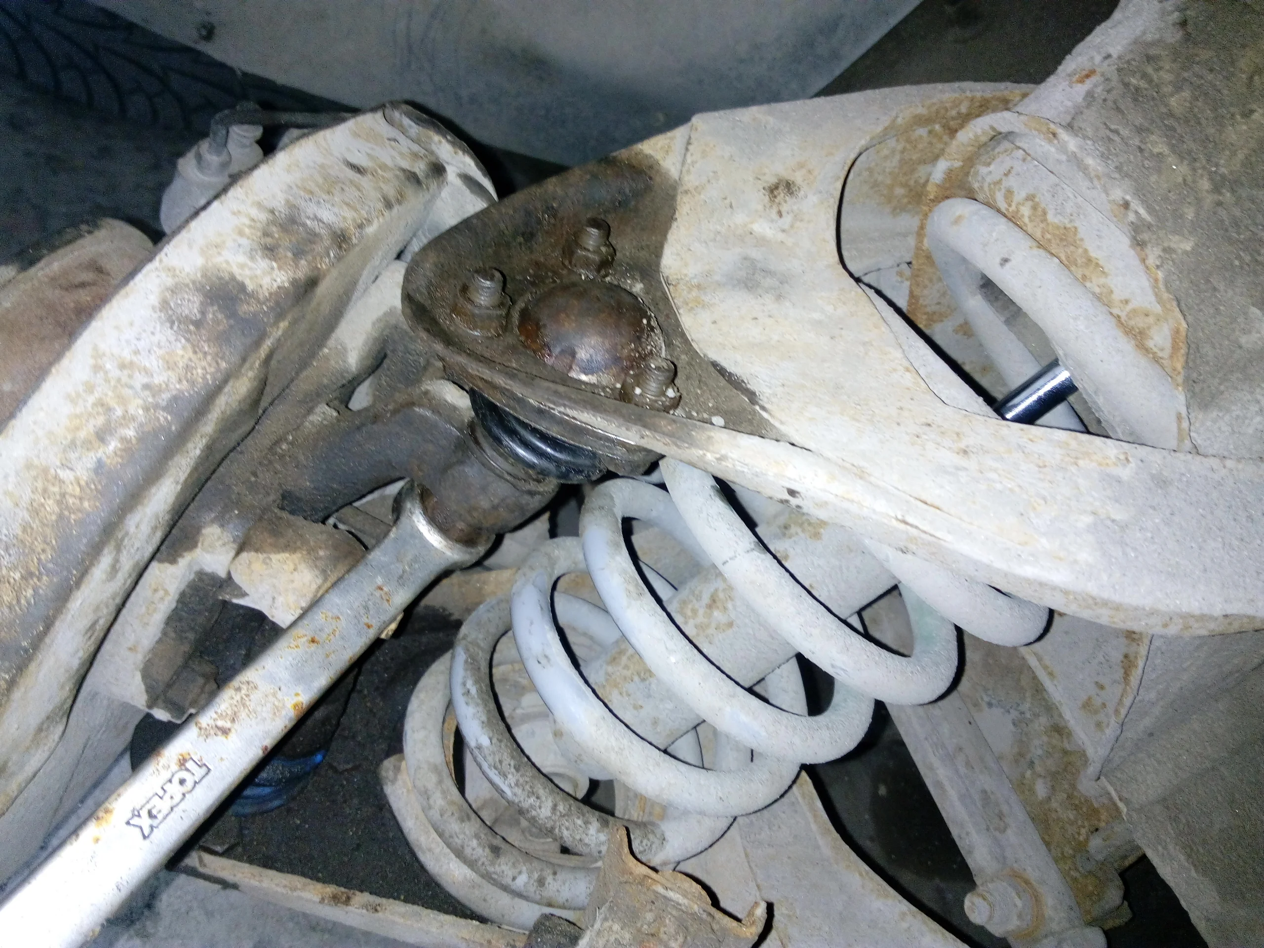 - Также очищаем болты крепления шаровой опоры к верхнему рычагу.