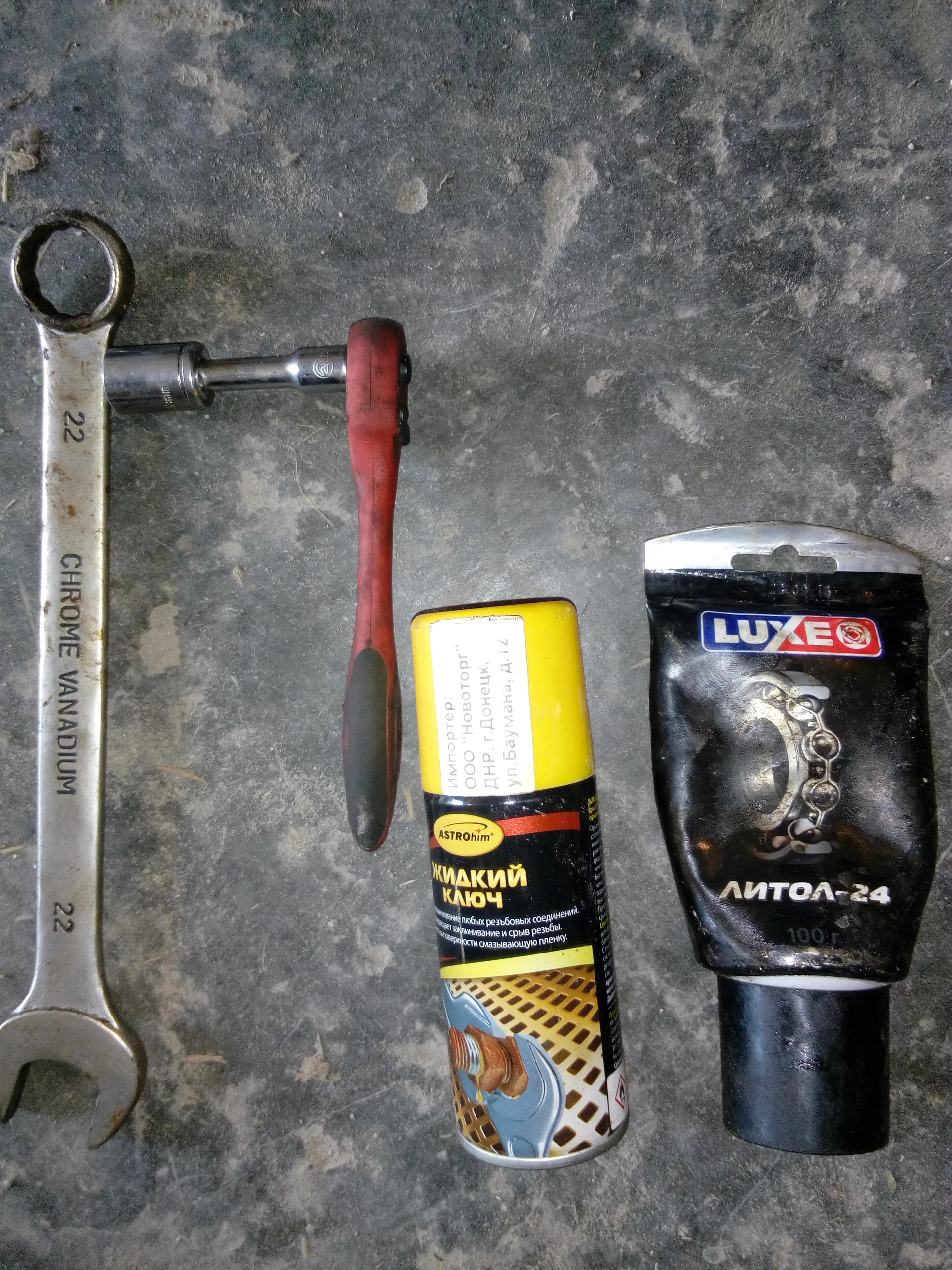 - Ключом на 22 пробуем сорвать гайку. Если вы хорошо сделать предыдущий пункт то смазка должна сделать свое дело и гайка пойдет легко.