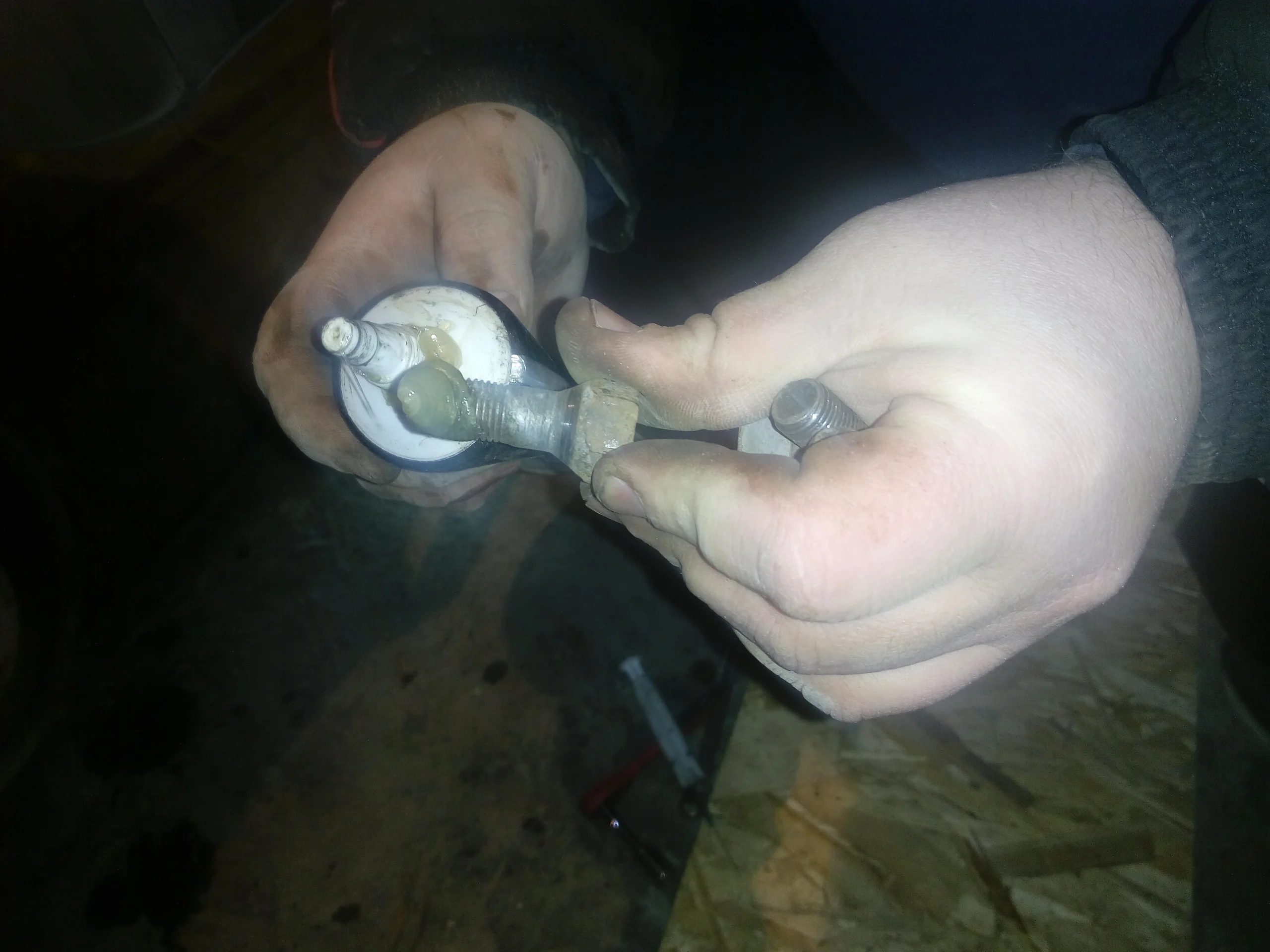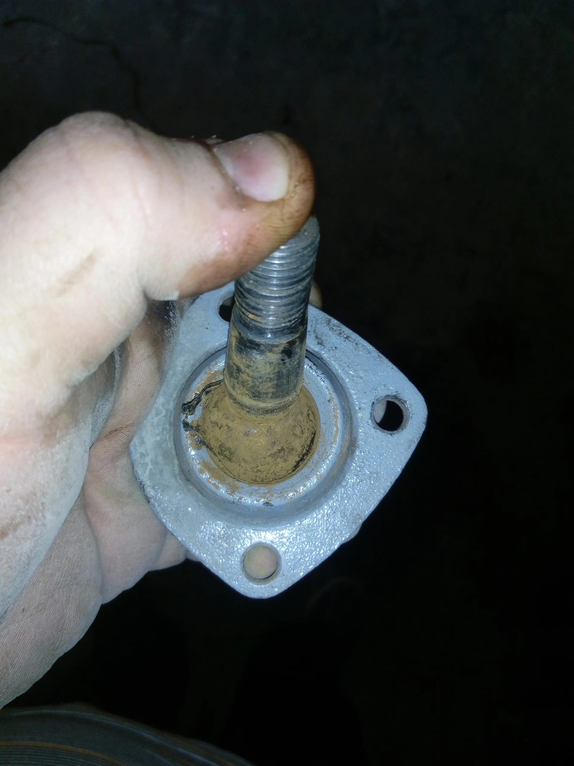 - Вытаскиваем шаровою опору. В нашем случае смазки не осталось и произошло разрушение шарового пальца. Это возможно из-за того, что пыльник был порван и пропускал влагу.