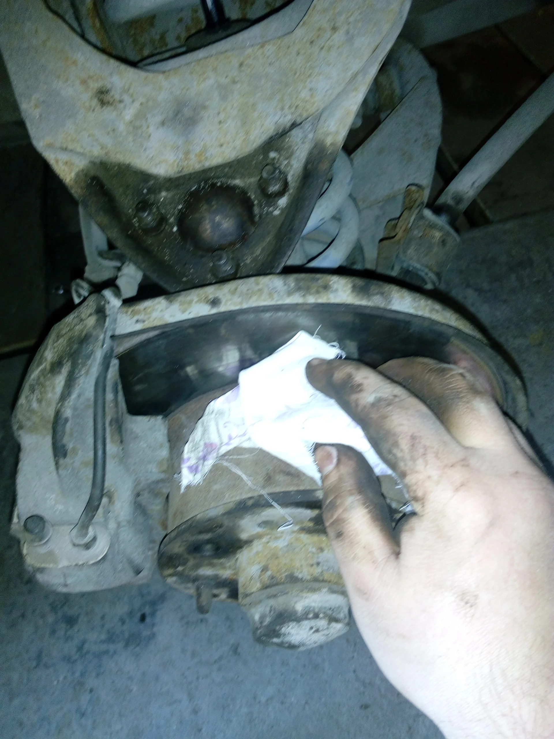 - Если во время работы вы испачкали тормозной диск, то рекомендую его протереть, так как колодки плохо взаимодействуют с грязной поверхностью.Особенно с жировой смазкой.