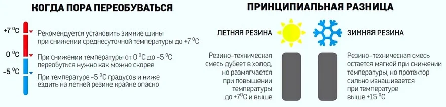 Так когда же менять резину и на что ориентироваться? На первый снег и гололед? Это будет неверно, ведь климат в нашей стране переменчив и неоднороден. Лучше посмотрите на градусник — если он показывает температуру +7°C±5°C, это свидетельствует о необходимости переобуть свою машину. Оставаться на летней резине небезопасно, так как при такой температуре воздуха резина теряет сцепление с трассой и становится более грубой. Вы можете рискнуть, и ждать пока такое понижение среднесуточной температуры не будет на протяжении целой недели, но знайте — в любой момент автомобиль может занести на повороте и он станет неуправляемым. Так как заморозки на грунте по ночам образуют тонкую корку льда на асфальте. Потому лучше не рисковать.