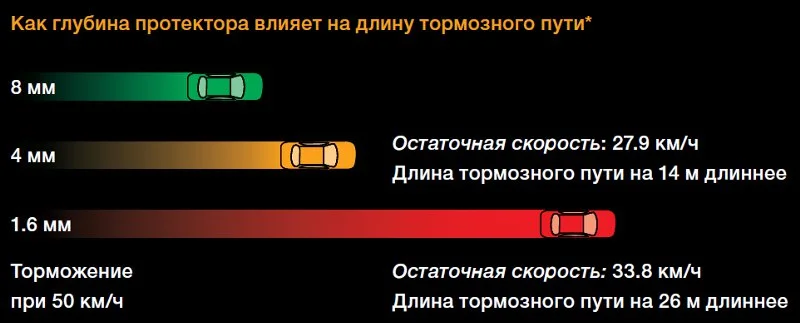 Влияние глубины протектора на тормозной путь