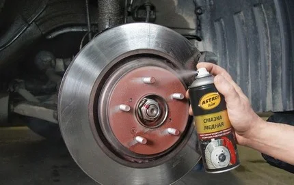 - Смазка контактных поверхностей диска и ступицы. Керамическая, алюминиевая, графитовая или иная термостойкая и водостойкая смазка, нанесенная на поверхности ступицы и диска, выступает в роли консерванта и предотвращает коррозию. Ее тонкая пленка перекрывает доступ кислорода и не дает оксидам взаимодействовать.Обработка поверхностей популярной медной смазкой нежелательна при использовании алюминиевых дисков. Медь с алюминием или железом образуют гальваническую пару, провоцирующую коррозию. Литол-24, солидол и аналогичные смазки тоже не подходят – при нагреве они быстро вытекают.