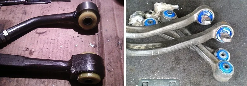 Слева резиновые сайлентблоки, а справа полиуретановые