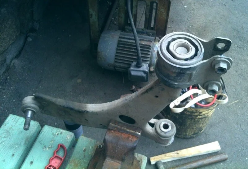 При отсутствии инструментов нужных при выпрессовке и запрессовке сайлентблоков, можно воспользоваться услугами пресса в автосервисе и это будет стоить в районе 1. тыс. Есть вариант замены сайлентблоков значительно проще, но несколько дороже, для этого вам нужно будет просто купить рычаг в сборе, который обойдется вам чуть меньше 6 000 р., но зато потребуется лишь замена рычага, которую произвести намного проще.