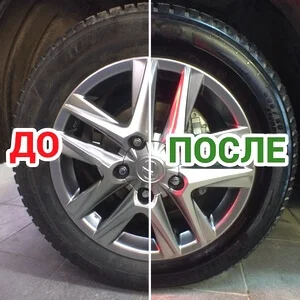 С гелем для посуды чуть другая ситуация. Прежде чем его наносить нужно хорошо помыть колеса. А затем, уже на чистую поверхность, наносить с помощью маленькой влажной губки. После обработки не потребуется ничем другим покрывать сверху. Когда он высыхает, то дает неплохой результат. Таким народным способом часто пользуются автомойщики.