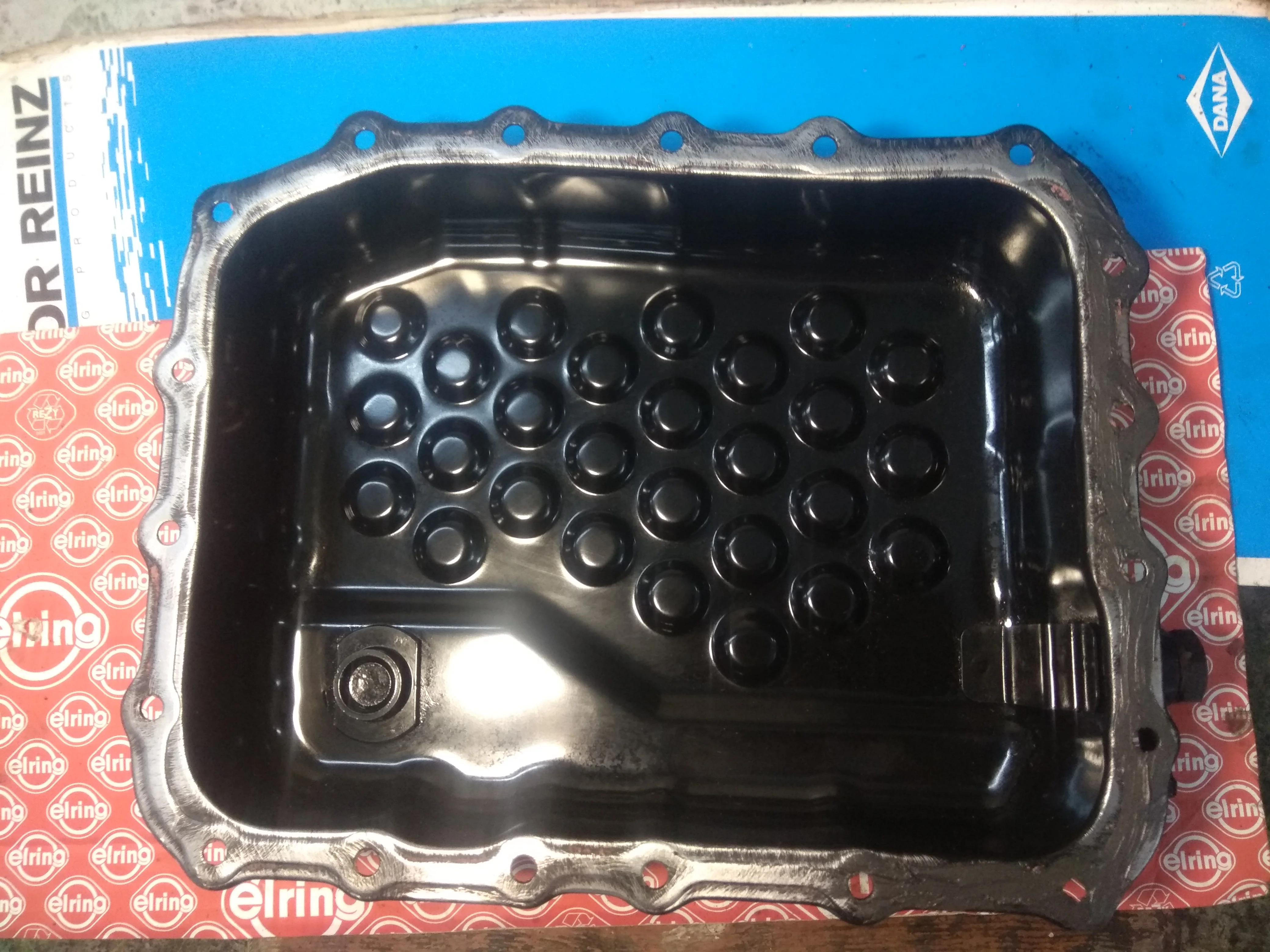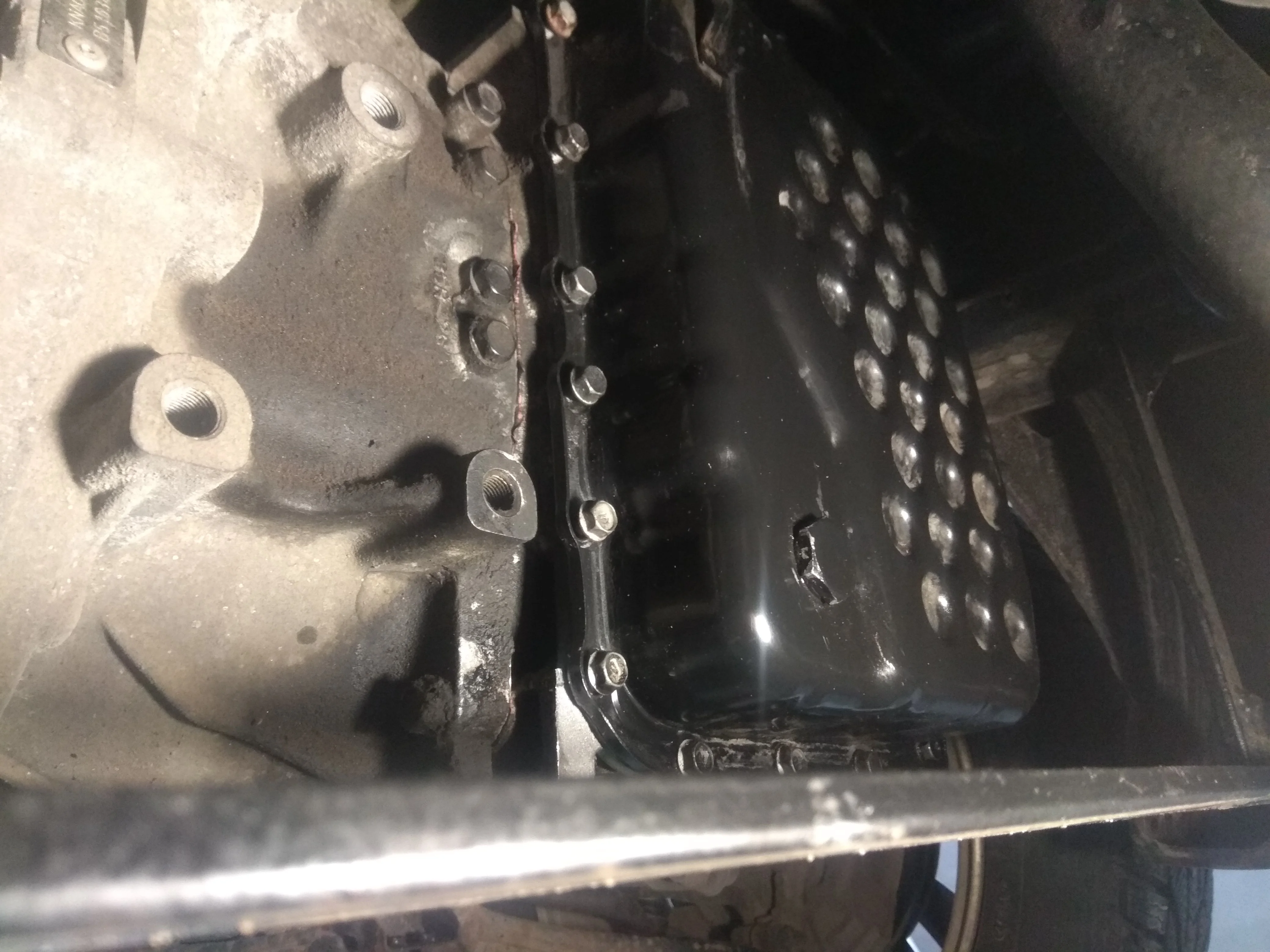 Аккуратно устанавливаем поддон на место. Затягиваем все болты. Прикручиваем обратно кронштейн и одеваем шланг сапуна. Заливаем масло.