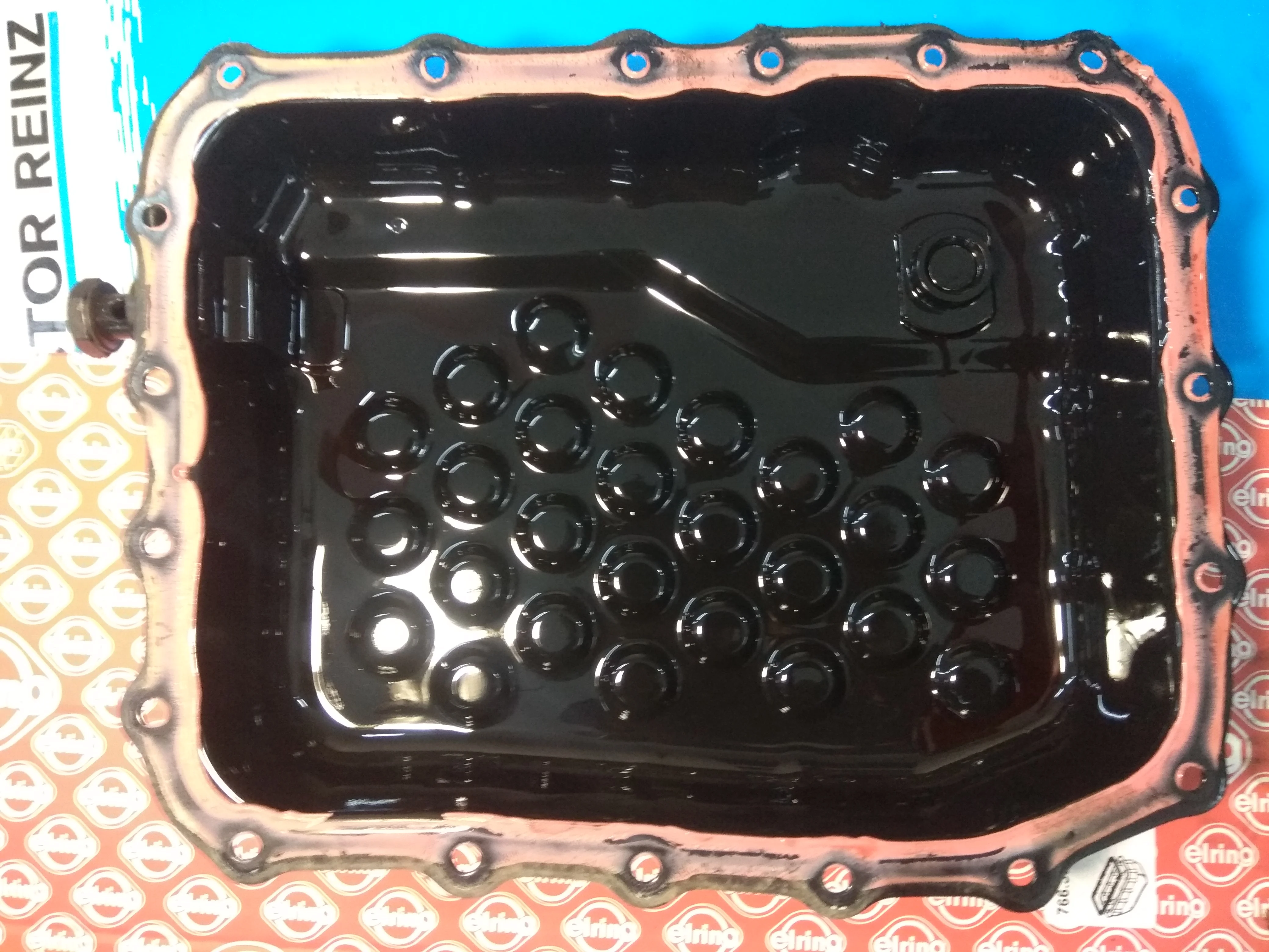 На автоматической коробке передач автомобиля KIA Optima началось запотевание масла в районе поддона коробки. Поддон установлен вертикально. Места для работы между коробкой и радиатором системы охлаждения много. Работа по устранению течи относительно легкая. Поддон устанавливается на герметик, без прокладки. Это и становится часто причиной течи масла с коробки Киа. Чтобы устранить проблему придется снять поддон и обновить уплотнение. Весь процесс работы сводится к нескольким этапам: