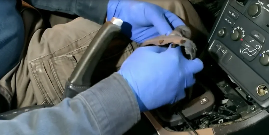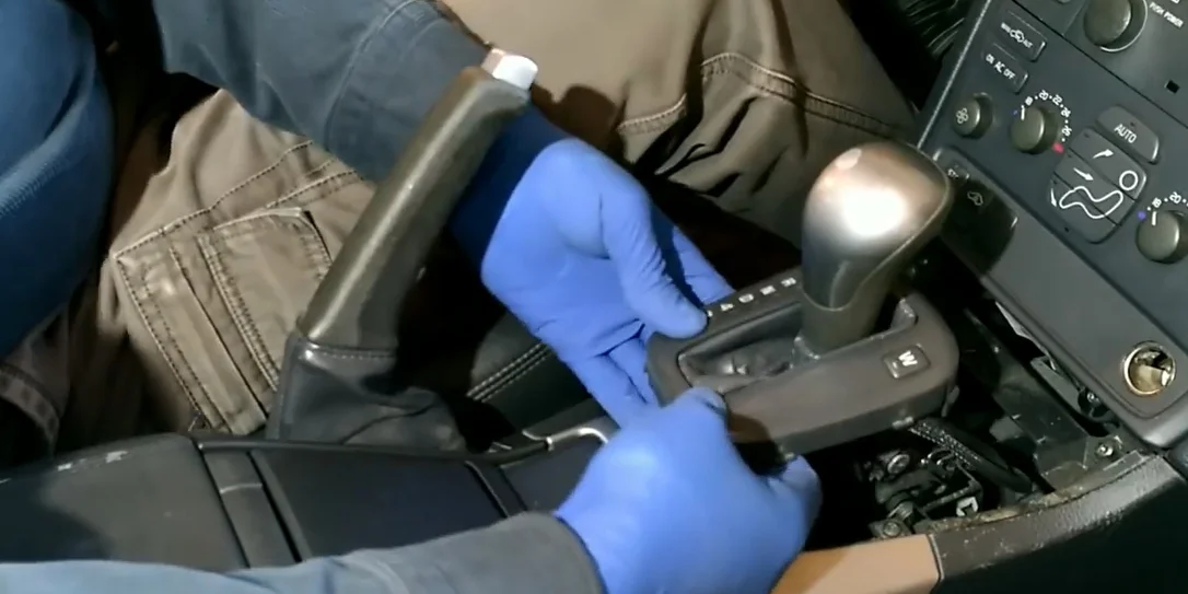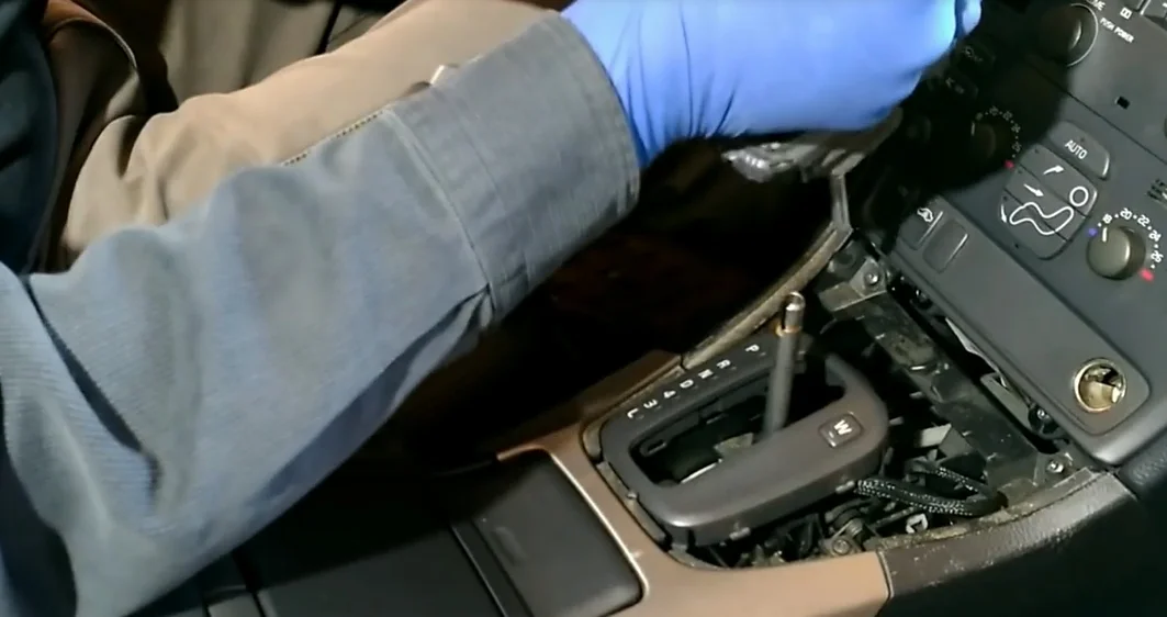 - Переключаем рычаг АКПП и выдвигаем из пазов пластмассу.