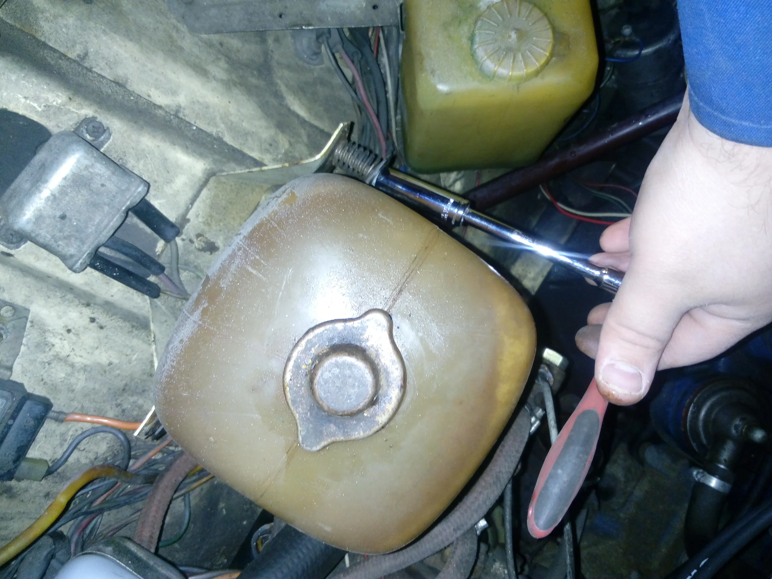 - Для начала нам нужно открутить расширительный бачок системы охлаждения