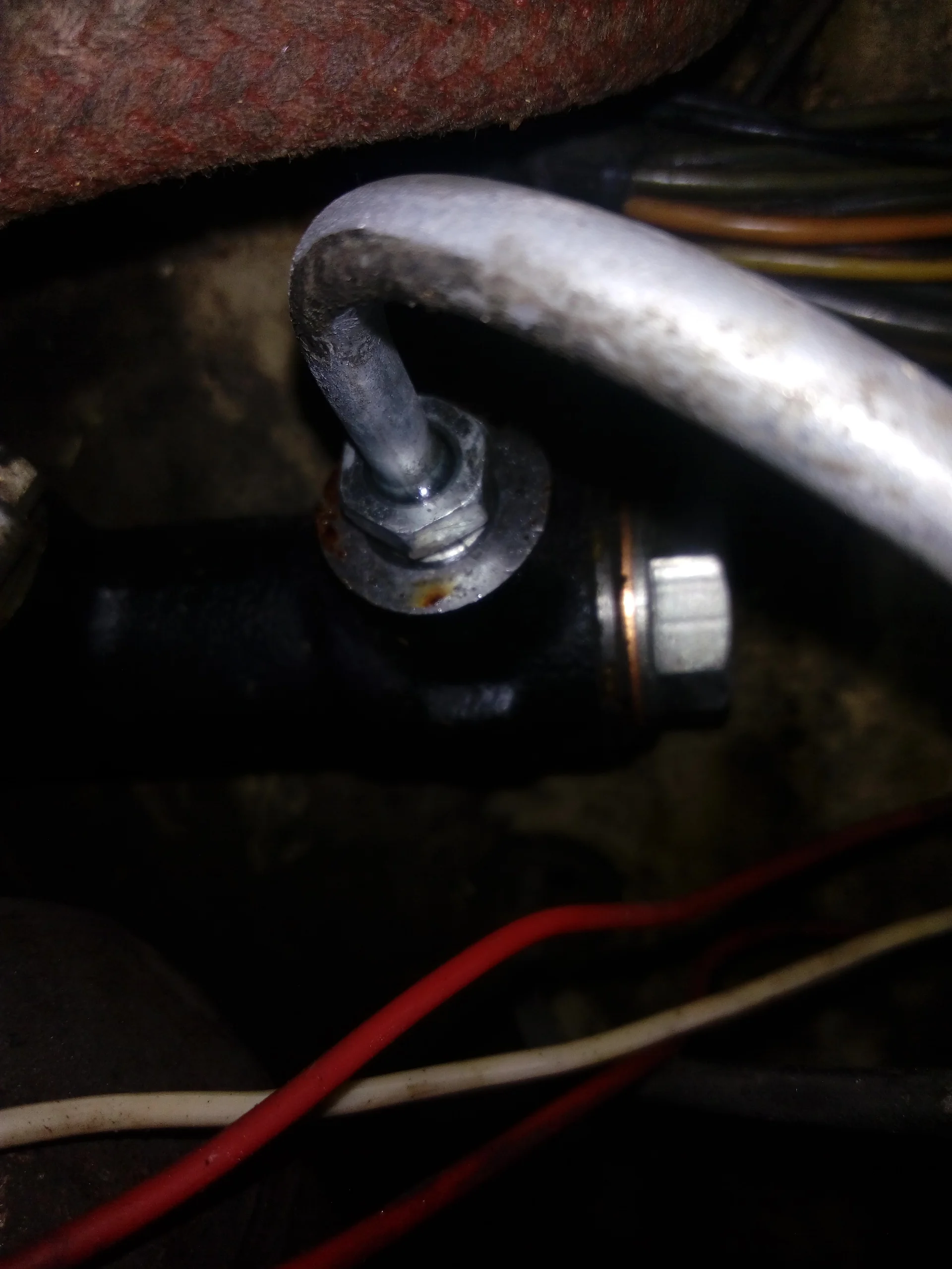 - Протираем ветошью тормозную трубку, которая соединяет главный цилиндр сцепления с тормозным шлангом.