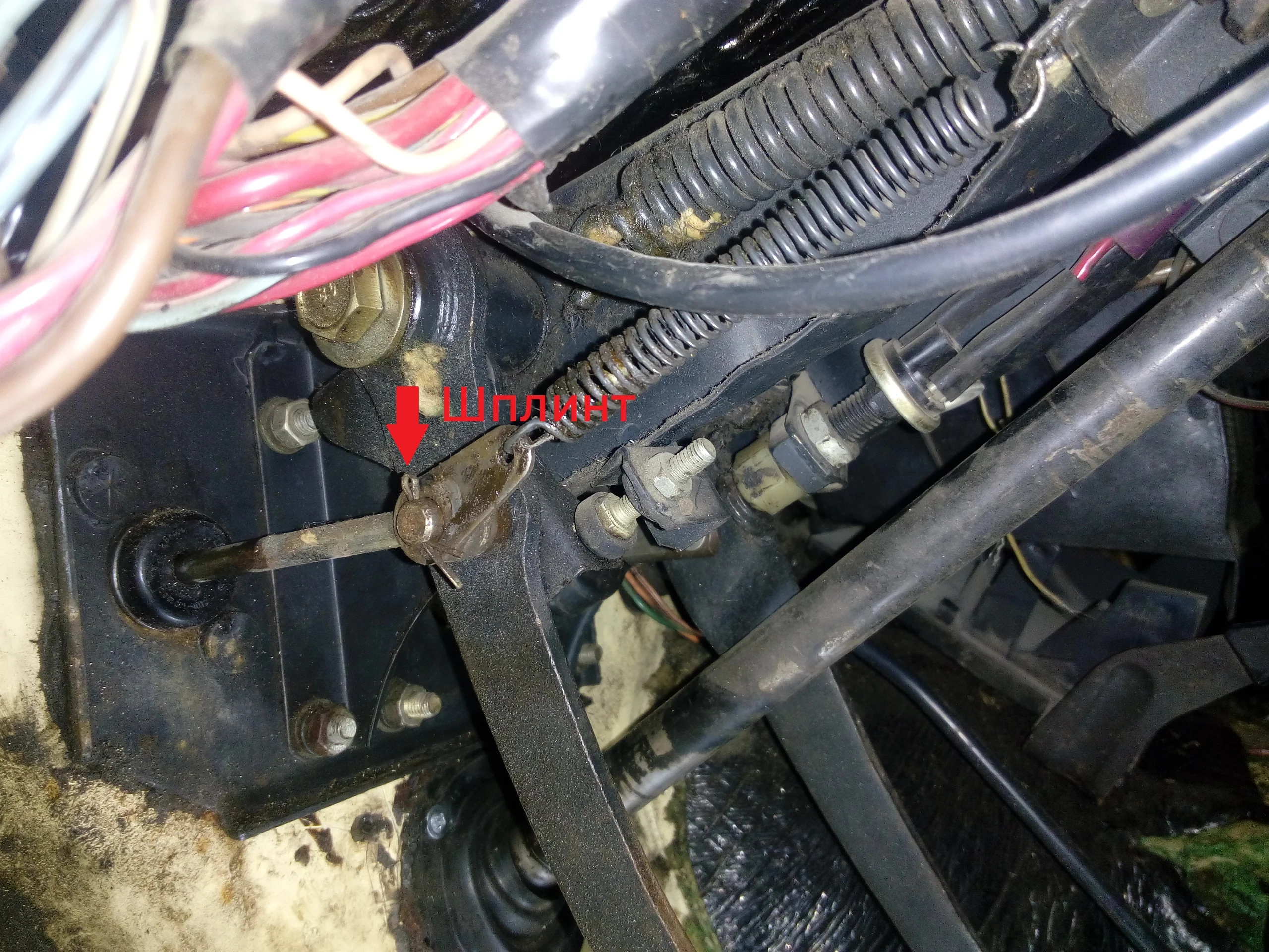 - Под торпедо находим педаль сцепления, круглогубцами вытягиваем шплинт из отверстия.