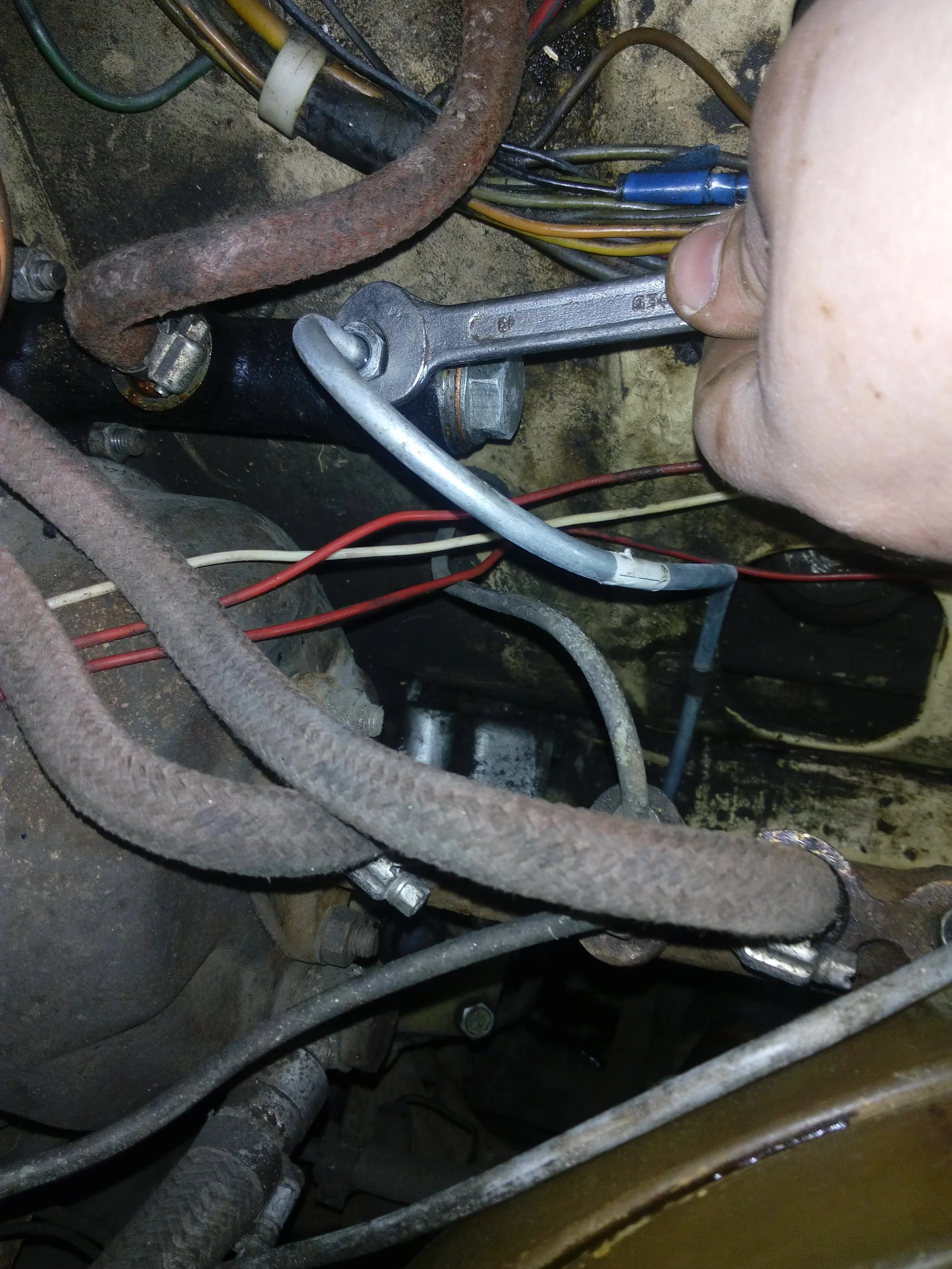 - Специальным ключом (разрезной ключ) откручиваем тормозную трубку.