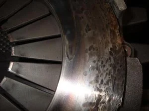 - Если пятна от перегрева и так называемой побежалости расположены безсистемно, то это говорит о перегреве корзины. Такая запчасть уже наверняка потеряла часть своих функциональных свойств, поэтому имеет смысл подумать о ее замене. Если же пятна расположены системно, то это просто говорит о нормальном износе корзины.