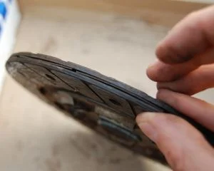 - Зачастую на лепестках имеются бороздки от выжимного подшипника. Считается, что если эти бороздки расположены равномерно, а их глубина не превышает одной трети высоты лепестка, то это допустимо, хотя и говорит о том, что корзина скоро подлежит замене. В случае, если соответствующие бороздки на разных лепестках имеют разную глубину, то такая корзина явно подлежит замене, поскольку не обеспечивает нормального нажима.