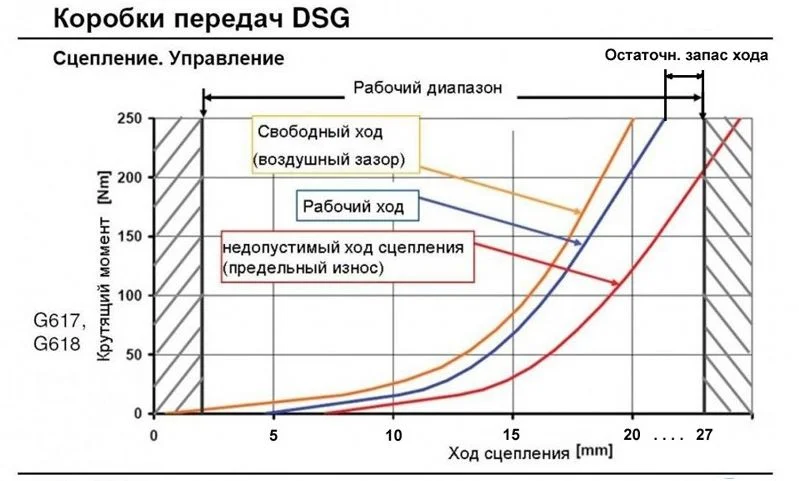 У роботизированных коробок передач ДСГ в настоящее время наиболее популярным сцеплением является DSG-7. Признаки его частичного выхода из строя обычно следующие: