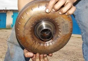 Неисправности гидротрансформатора АКПП приводят к появлению вибраций и неприятных шумов в процессе езды автомобиля в городском режиме, то есть, на скорости около 60 км/ч. Причинами неисправности могут быть частично вышедшие из строя фрикционные пары, износ лопаток шестерен, разрушение уплотнительных сальников, выход из строя подшипников. Ремонт гидротрансформатора — достаточно дорогое удовольствие. Поэтому чтобы не доводить до такого «бублик» (гидротрансформатор получил такое название среди автолюбителей за свою круглую форму) коробки автомат, есть универсальный совет — регулярно меняйте жидкость ATF.