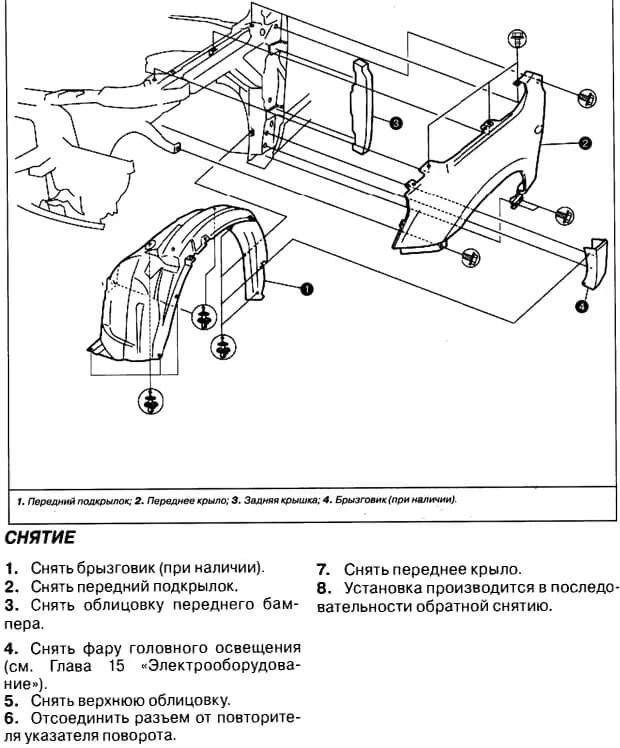 Определившись с покупкой крыла можно перейти к замене. Предварительно стоит ознакомиться с инструкцией от производителя. В ней присутствует детальный алгоритм процедуры и сопутствующие рекомендации специалистов концерна Toyota. Найти инструкцию вместе с иллюстрациями вы сможете далее: