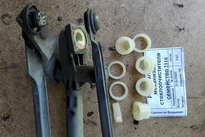 Для ремонта понадобится ремкомплект втулок трапеции ВАЗ 2110. Артикул ремкомплекта 2110-370533PK и стоимость меньше 100 руб.