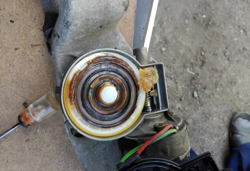 Причина неисправности стеклоочистителей Фокуса – тяга упала вниз из-за износа пластиковых втулок. Втулка у водительской стороны на длинной тяге особенно подвержена внешнему воздействию, внутрь затекает вода и как оказалось, плоскости шарика пальца и втулки расположены не соосно, площадь сопряжения уменьшена.
