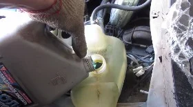 При замене важно помнить, что жидкость - токсична, и менять нужно только на холодном двигателе. Начать процедуру стоит с откручивания крышки расширительного бачка.