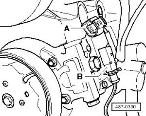 - Восстановить соединение между штекером А и штекером В на регулировочном клапане при помощи адаптер-кабеля из набора вспомогательных измерительных средств -V.A.G 1594 C-;