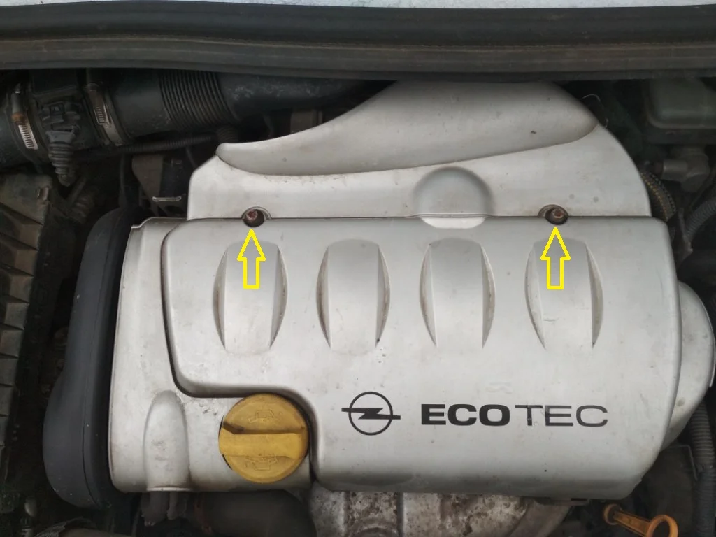 - Снимаем декоративную крышку двигателя, открутив два винта TORX Т30 и маслозаливную крышку.