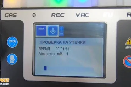 При температуре окружающего воздуха ниже -10°С проверку желательно не проводить. Дело в том, что при низкой температуре давление хладагента значительно падает, что может привести к некорректным результатам теста. В крайнем случае можно сильно прогреть машину с включенной печкой до такой степени, чтобы прогрелся не только салон, но и «торпеда». Делается это для того, чтобы датчик испарителя «понял», что салон можно и охладить. Соответственно, систему кондиционирования или климат-контроля можно будет запустить.