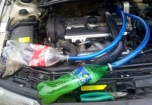 Промывка радиатора печки с помощью двух пластиковых бутылок