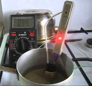 Если нагрев датчика производит не паяльником, а в емкости с водой, то следите чтобы покрывала не весь датчик целиком, а лишь его чувствительный элемент! По мере нагрева (контроль осуществляется термометром) будет происходить такое же срабатывание как и описывалось уже выше.