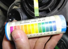 Если вам доступна лакмусовая бумажка, то с ее помощью также можно косвенно проверить состояние антифриза. Для этого нужно поместить тестовую полоску в жидкость и дождаться результат реакции. Оценив цвет бумажки узнаете рН-фактор. В оптимальном варианте бумажка не должна быть ни синего, ни красного цвета. Нормальным значением рН для антифриза принято считать 7…9.