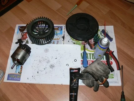 Процесс разборки и очистки компонентов моторчика печки