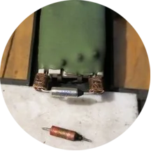 В некоторых случаях проблема слабодующего моторчика может заключаться не в нем. Если токоограничивающий резистор управления оборотами закреплен на корпусе, то причиной, почему моторчик печки крутит медленно, может быть поломка этого самого резистора. Такой мотор можно отличить по многоконтактной фишке разъема, наличию большого резистора где-то сзади или по радиатору там же.