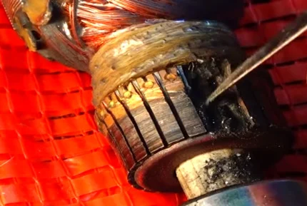 Выгоревший ламель моторчика, с такой неисправностью нужно либо менять коллектор либо весь электромоторчик