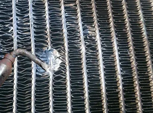 - Радиатор кондиционера по конструкции похож на основной радиатор, но не рассчитан на высокие температуры более 100 градусов, при этом держит давление до 3 атм. и выше. Поэтому имеет смысл паять только мелкие дефекты, либо пользоваться сваркой.