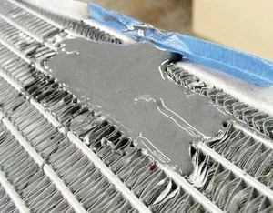 | Композитное восстановление | Крупные пробоины снизу, вверху или по бокам радиатора, большие сколы на трубках сот. | От 1–2 лет при использовании универсальных полимеров, около 5 лет – со специальными составами для алюминия. |