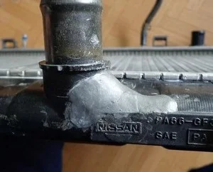 - Деформация алюминия в месте стыка с пластиком. Ни припой, ни клеевые составы, не обеспечивают должной степени надежности ремонта, поэтому высок риск повторной протечки.
