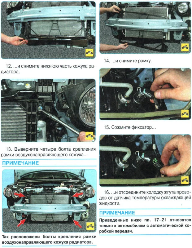 Вооружившись этой пошаговой инструкцией можно незамедлительно приступать к ремонту (демонтаж следует начинать со слива ОЖ и снятия переднего бампера):