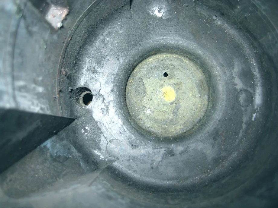 Сразу видна причина появившегося посвистывания, это влага которая попадала на нижнюю втулку, да и верхняя втулка тоже страдает и изнашивается не меньше. Отверстие для слива конденсата влаги я сразу расширил до 3 мм.