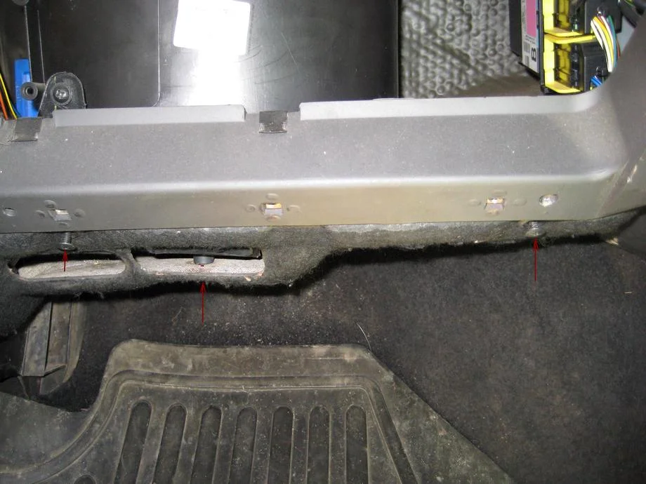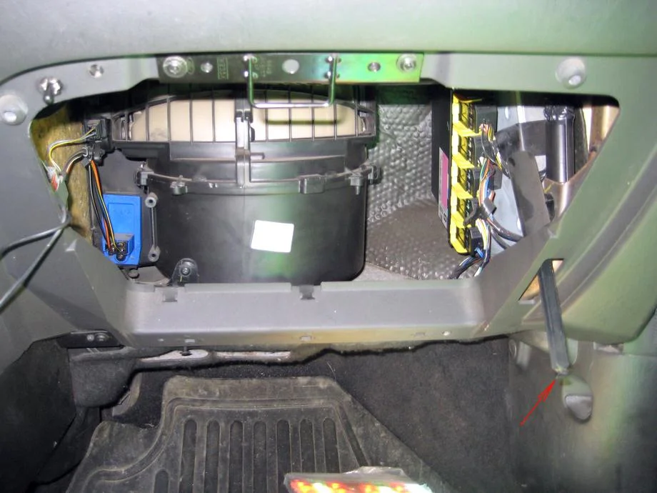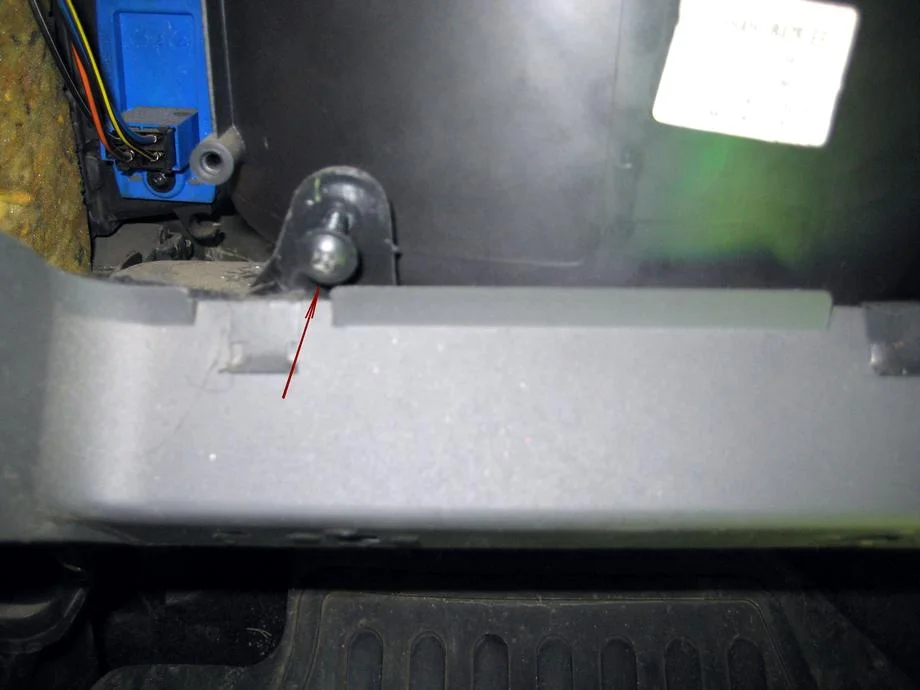 Откручиваем крепление воздуховода в ноги пассажиру, болтик (крест) один штук, снимаем воздуховод.