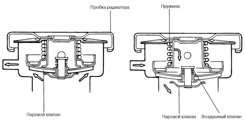 - Неисправность воздушного клапана. Его задача состоит в том, чтобы убрать лишний воздух из системы охлаждения, и не допустить попадания его извне. В случае неисправности воздушного клапана происходит подсос воздуха, который распространяется по рубашке охлаждения двигателя. Исправить ситуацию можно ремонтом или заменой крышки с упомянутым клапаном (чаще всего).