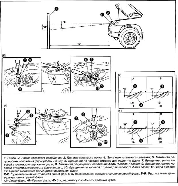 - Перед тем, как приступать к регулировке фар Suzuki Grand Vitara, следует ознакомиться с алгоритмом действий в инструкции от производителя и подготовить нужные инструменты.
