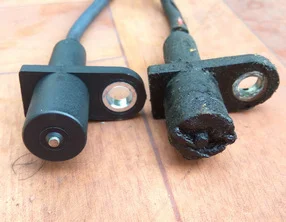- Неисправность ДПКВ. Датчик коленвала определяет момент, в который нужно подавать топливо (и искру – на бензине/газе). Сам он выходит из строя редко, а вот при проблемах с проводкой – сигнал теряется, движок глохнет, но по инерции заводится, что и вызывает рывки, тряску.